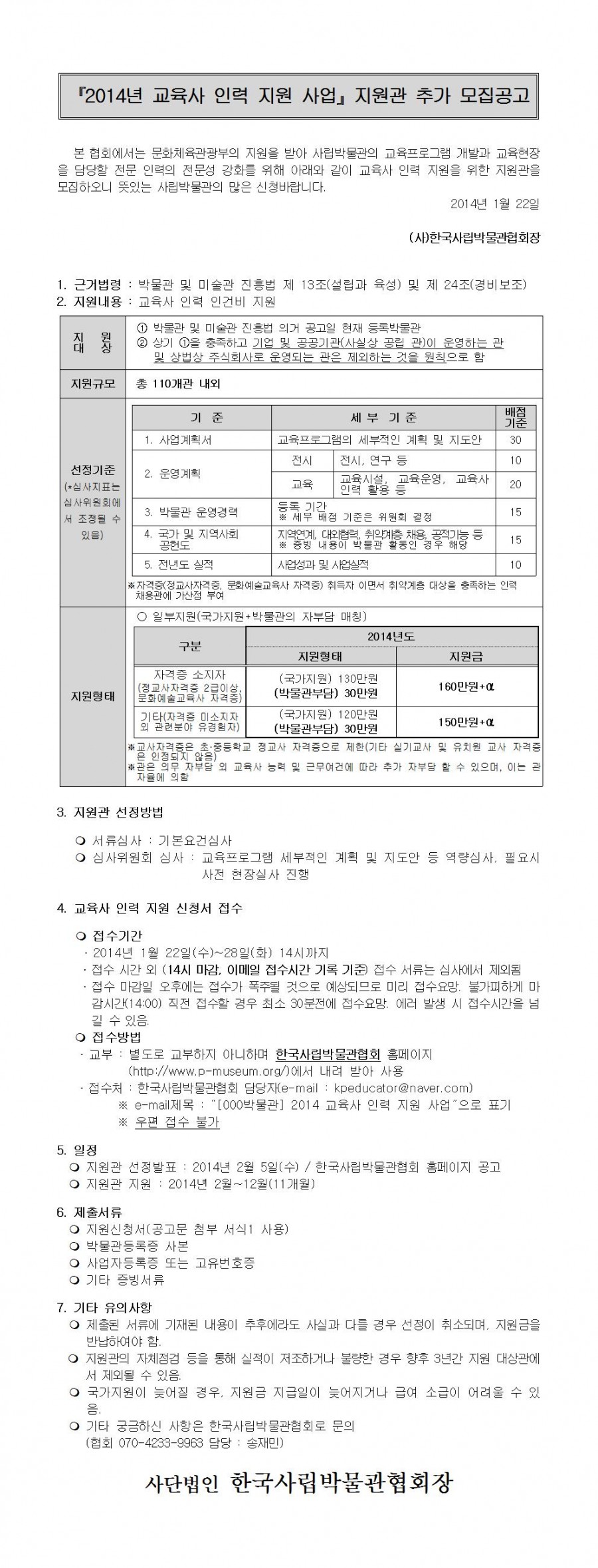 『2014년 교육사 인력 지원 사업』지원관 추가 모집공고 - 2차