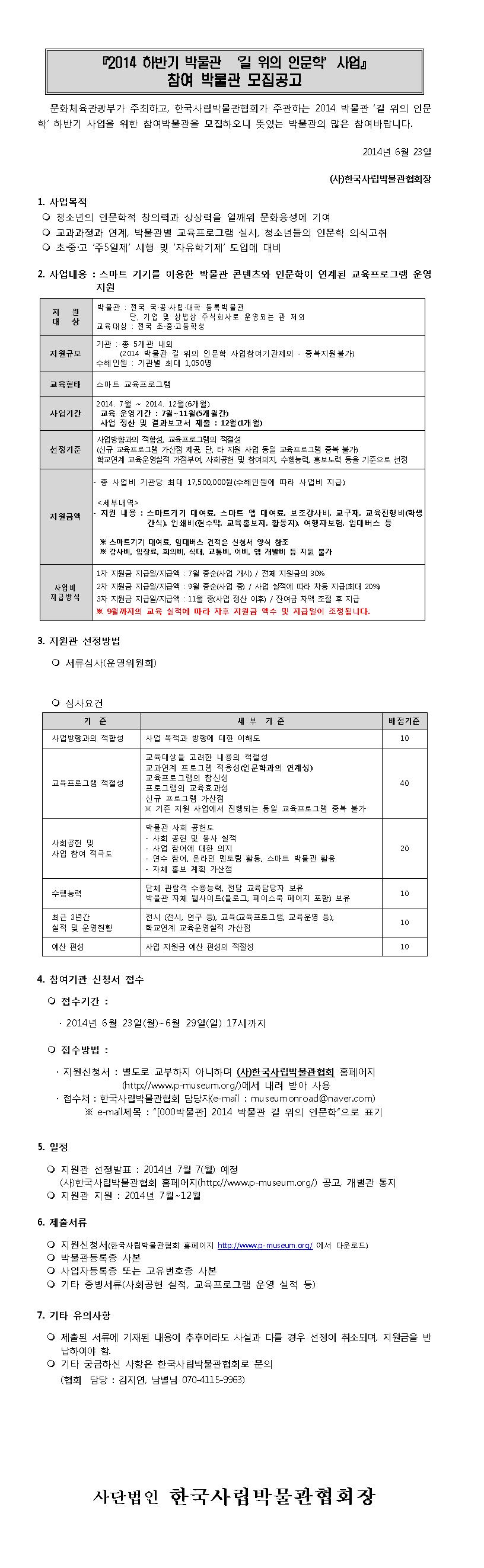 [인문학] 『2014 박물관 ‘길 위의 인문학’사업』참여 박물관 추가 모집공고 페이지 정보 작성자 관리자 작성일14-06-23 14:27 조회41,085회 댓글0건 관련링크 이전글 다음글 목록 본문 댓글목록 등록된 댓글이 없습니다. 이전글 다음글 목록
