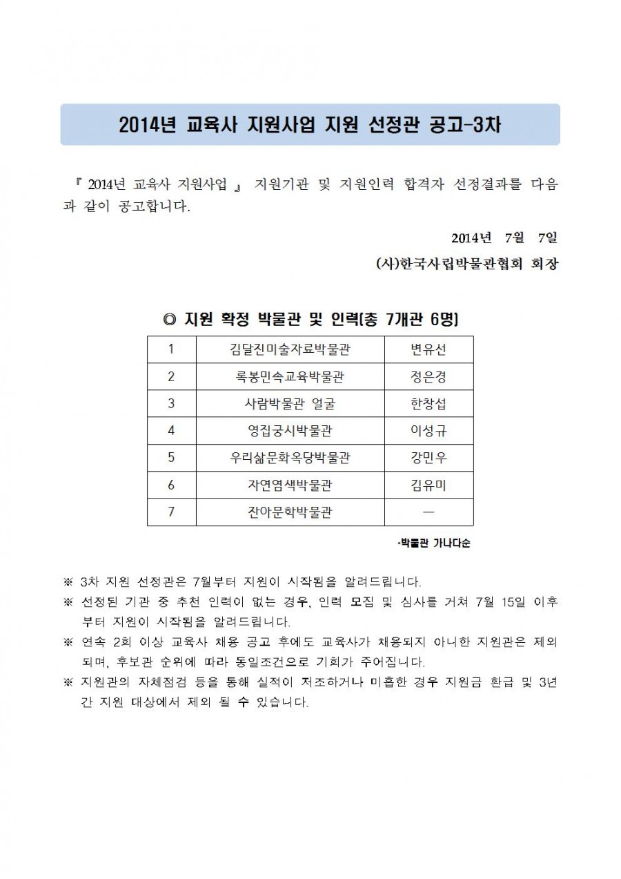 『 2014년 교육사 지원사업 』 지원기관 선정 공고 - 3차 페이지 정보 작성자 관리자 작성일14-07-07 14:29 조회40,203회 댓글0건 관련링크 이전글 다음글 목록 본문 댓글목록 등록된 댓글이 없습니다. 이전글 다음글 목록